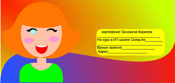 Подарочный сертификат Comp-As дает право изучить за месяц летних каникул годовой курс по таким ИТ-дисциплинам, как Компьютерная графика, Алгоритмизация на базе Scratch и Minecraft, Web-дизайн, Программирование на языках Pascal, С, С# .